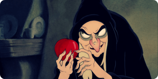 De Koningin moest en zou de mooiste zijn. Helaas was daar haar stiefdochter Sneeuwwitje, en zij was nou eenmaal het mooiste van het hele land. Hoe hard de Koningin ook vocht, welke streken ze ook bedacht, ze delfde altijd het onderspit. En uiteindelijk werd ze zo slecht en lelijk van haar jaloezie dat ze nooit meer de mooiste van het land zou worden en stierf van haat.